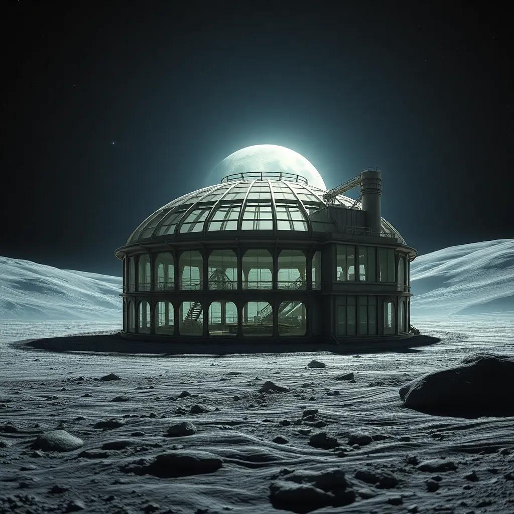 - Scale & Outlook:Aerial overview capturing the expansive layout and interaction with the surrounding lunar landscape.